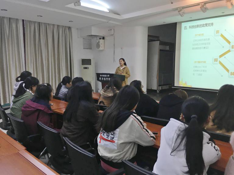 这是向日葵团队首次走出校门的宣讲,对团队意义重大。团队队长赵慧同学经过简单的自我介绍、向同学们解释了此次宣讲的主题及其背景后,宣讲正式开始。向日葵团队立足于十九大并且结合同学们的专业知识与日常生活实践,分层解剖,从五个方面对此主题进行了宣讲。首先韩梅同学通过介绍我国古代四大发明及播放一段段视频引出了我国的新四大发明,图文并茂,介绍了我国最新的科技创新成果,并为大家分析了这些成果对于我们当今社会的重大意义;其次赵慧同学从背景出发解读十九大报告中习近平总书记对科技创新的最新论述并对关键词进行分析,加深了同学们对重点理论的理解;中间宣讲团队穿插了一个有趣的游戏环节,在活跃气氛的同时,减轻同学们的疲惫,放松同学们的心情,加深两校之间的了解,使同学们对宣讲内容更加感兴趣,调动了听讲的积极性;接着赵雪渊同学上升到国家层面,从十八大以来国家政策支持方面展现科技创新的重要战略地位;最后唐家玉同学由例及理,语言诙谐幽默,指出并分析了我国科技创新的不足与提升途径,鼓励各位医公司同学们积极投身于医学创新的行列中,为我国医学事业的发展及建成世界科技创新强国贡献出自己的力量,升华宣讲主题,到达宣讲目的。