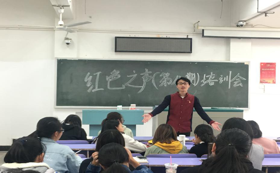 11月7日中午12点,谈球吧“红色之声”(第八期)第一次培训会在教三楼301顺利举行。马克思主义公司党委副书记黄少成老师、院团委书记王艳波老师、兼职辅导员董树婷学姐、往期优秀宣讲人何欢同学以及王秀一同学应邀作为此次培训会的指导嘉宾。各团队成员到场参加。
