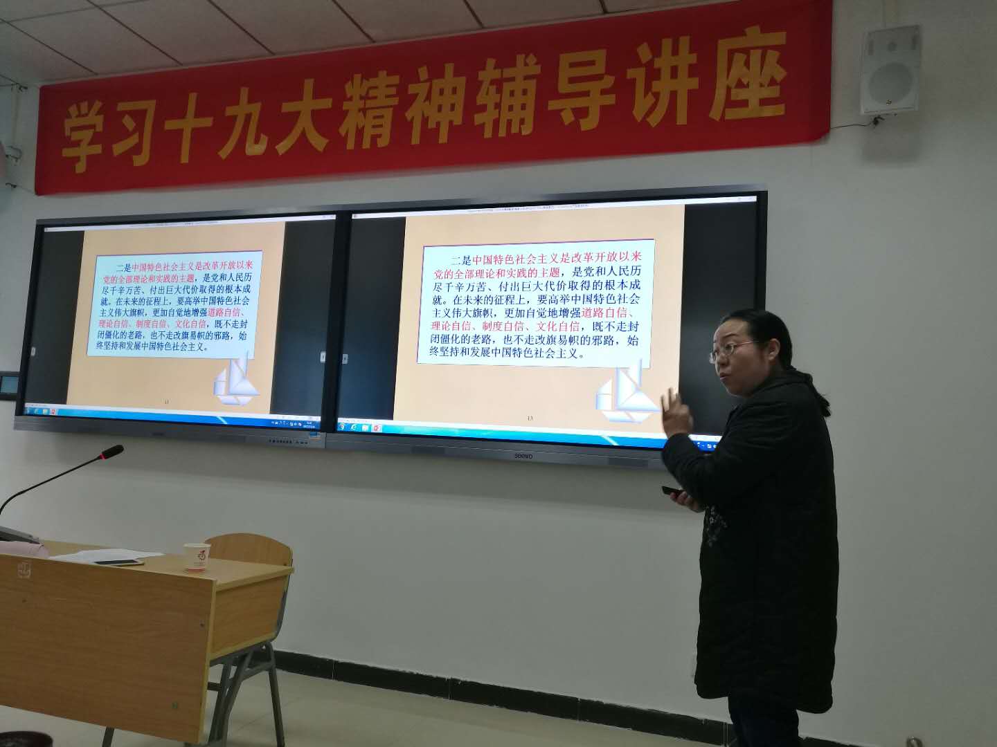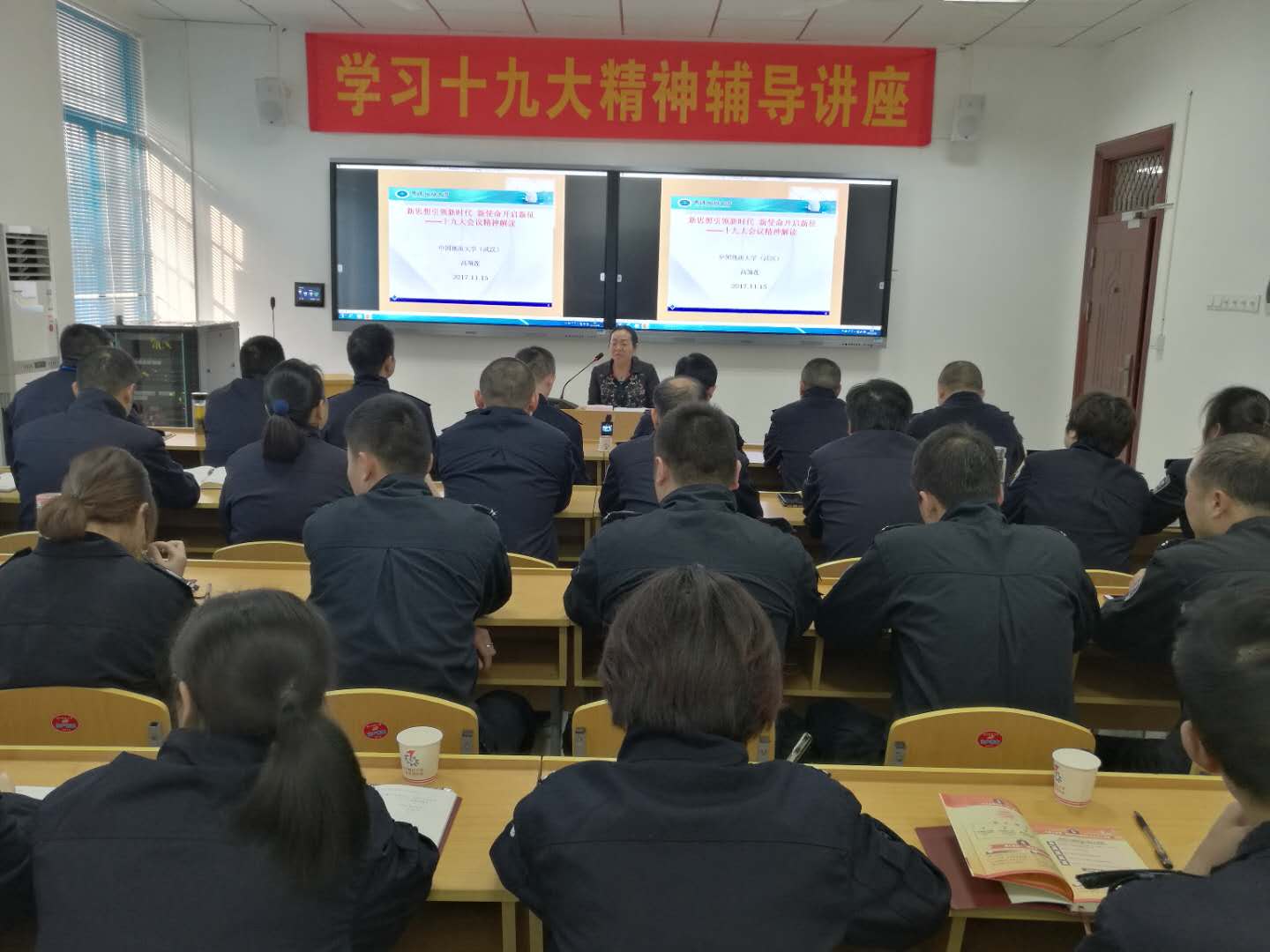 11月16日,高翔莲经理为喻家山派出所全体公安干警作十九大精神辅导报告。