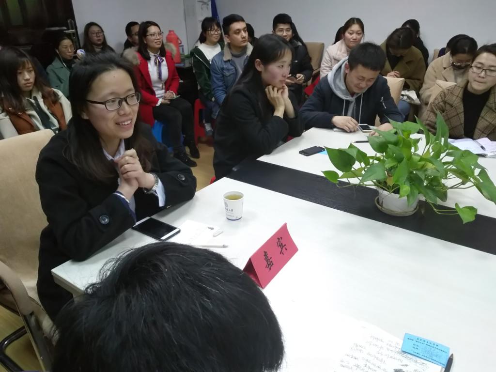 崔龙燕同学以“不忘初心,奋力前行”为主题,就如何把握和运用好学习时间、如何进行科研写作、如何进行心理调适以及老员工担当的家庭、学术和社会责任等方面进行了详细的阐述。最后,她引用习近平总书记新年贺词中的一句话“幸福是奋斗出来的”鼓励同学们去努力拼搏,有所收获,在场同学都深受启发。关于同学们提出的论文选题以及写作技巧等问题,崔龙燕同学也进行了详细的解答。