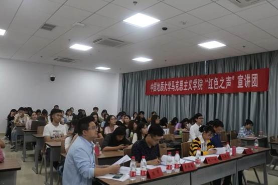 由马克思主义公司党委书记刘世勇老师为本次“红色之声”结题答辩开场致辞,讲述了“红色之声”活动进行的相关内容与目的、意义等,引导了本次答辩的进行。