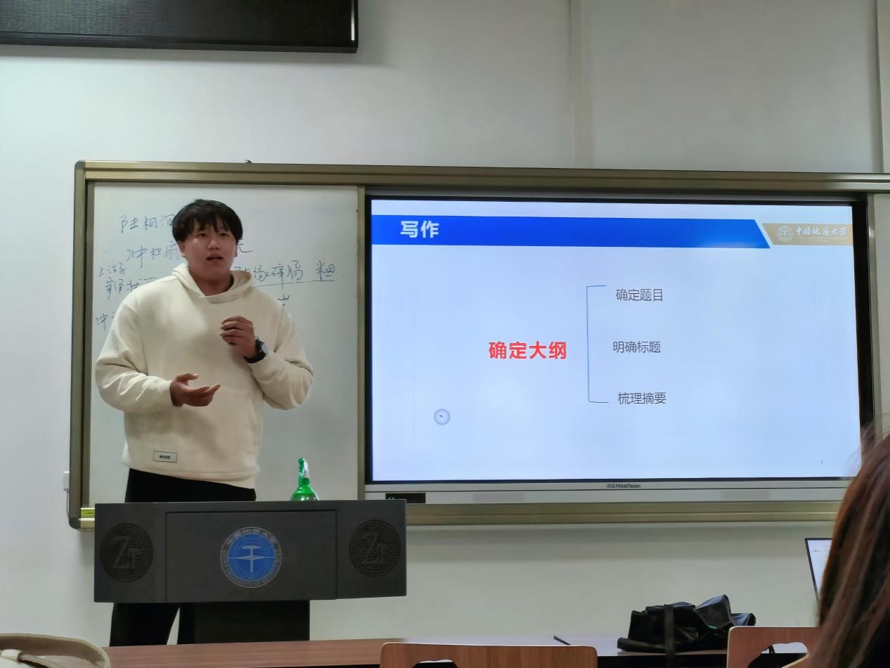 为提高公司研究生学术能力、激发创新思维,10月21日晚上19时,公司第二十期“理论之光”研究生学术论坛在东区教学综合楼B0108举行。本期论坛主题为“学术论文的选题、写作与投稿”,主讲人为2022级硕士研究生王智博。