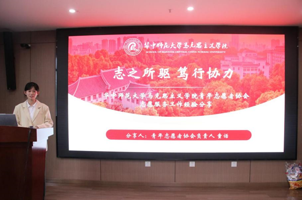 随后,分别由童话代表华师谈球吧青协、张祖豪代表地大谈球吧青协进行了协会工作内容分享。她们首先从组成人员、协会宗旨等方面详细介绍了各自团队的组织架构,随后又介绍了各自的常规活动和各类特色活动,并分享了自身团队特色活动、大型会议志愿服务活动时收获的经验。最后讲述了她们所带领团队近年来所获得的成就。