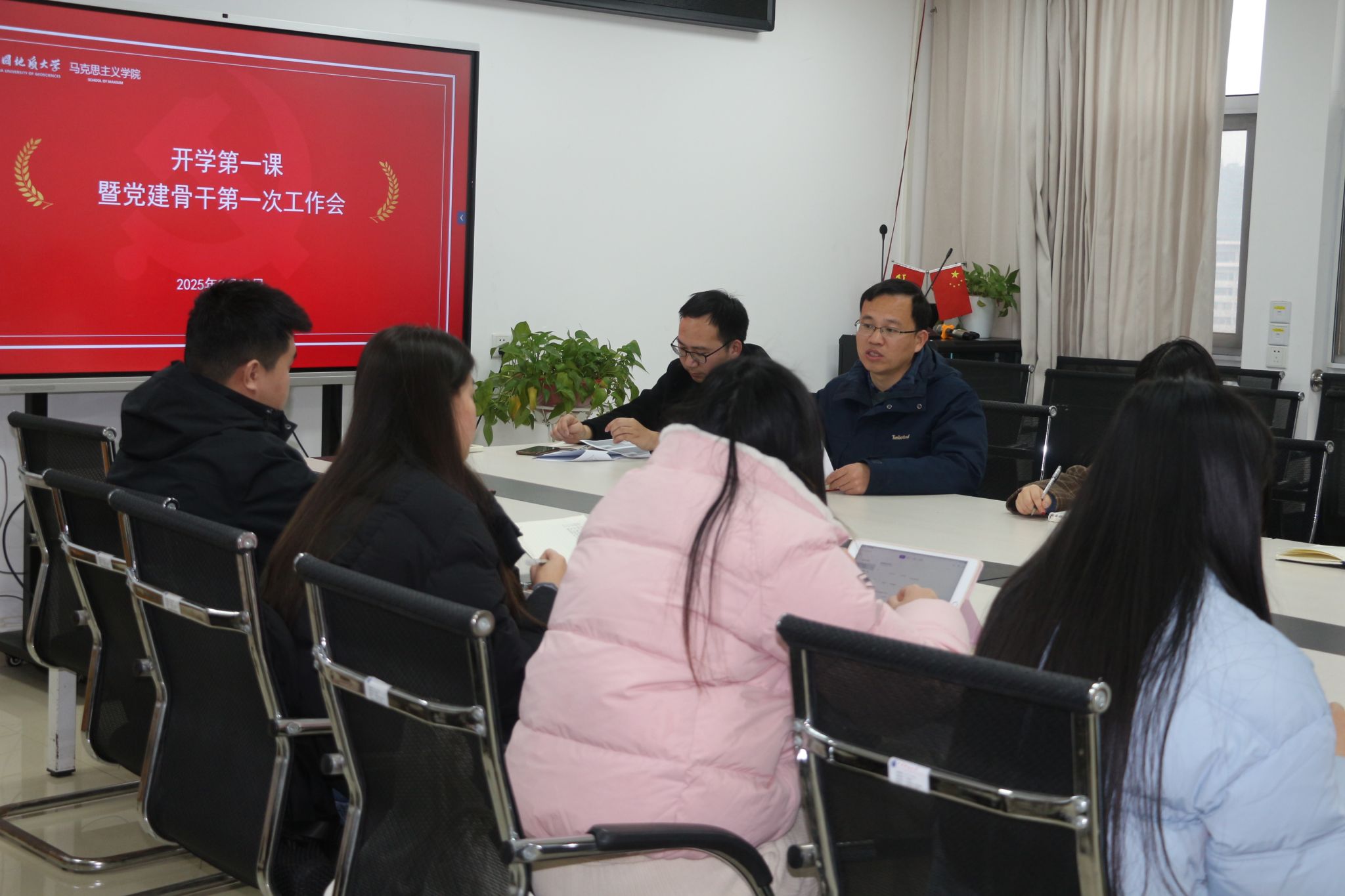 姚晟强调党建骨干应及时掌握新学期返校工作的基本情况,确保信息准确、全面。同时,他就3月份发展对象培训班及4月份入党积极分子培训班的相关工作,提出了具体而明确的要求。会议交流环节,师生就党建等相关事项进行了充分交流。