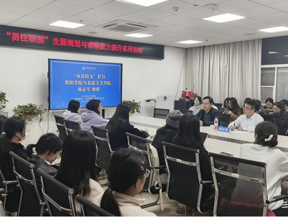 2025年11月7日晚,谈球吧“勇往职前”生涯规划与求职工作室“对话员工”栏目活动在东区教学楼B座1013举行。贵阳公司谈球吧教授、博士生导师杨志军受邀分享,30余名硕博研究生参与。公司党委副书记武彦斌主持活动。