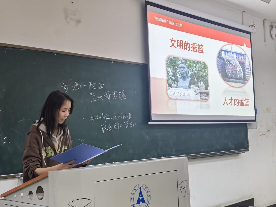 2024年11月14日16点20分,谈球吧第十五期红色之声“摇篮筑梦”团队在线下进行了主题为“生命安全主题教育”、“甘洒一腔血,蓝天舞忠魂”和“传摇篮精神,做时代新人”的线下宣讲,团队成员郭雅婕、李瑞雪、席海冰、辛汪洋、朱一婷担任主讲人,中南财经政法大学法公司2407和2410团支部参与本次活动,共计116名同学。