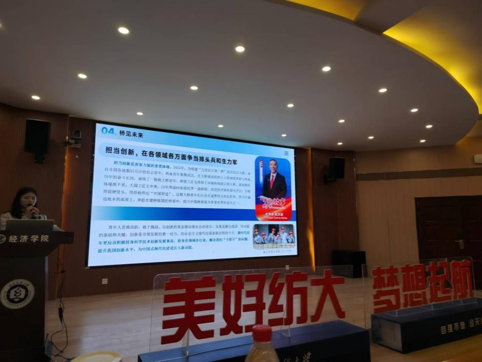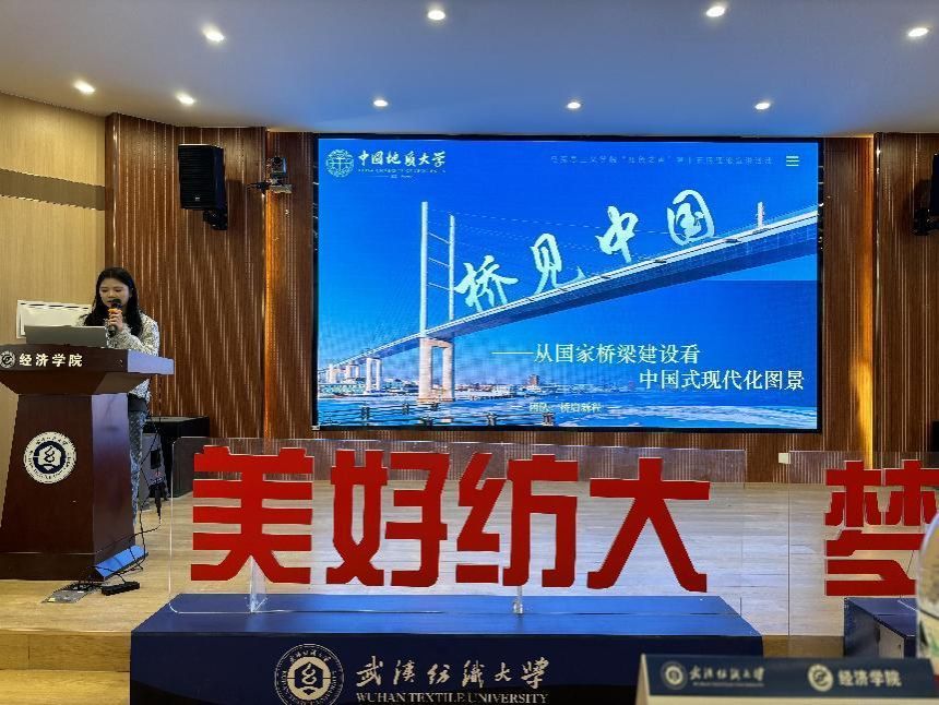 桥梁建设如同国家发展的缩影,见证了新中国从无到有、从有到优的辉煌历史。桥梁建设史也是新中国的成长史,是中国式现代化建设的生动缩影,是一张靓丽的中国名片。为深入学习和理解中国式现代化理论,谈球吧“桥启新程”宣讲团走进武汉纺织大学经济公司开展以“桥见中国——从国家桥梁建设看中国式现代化图景”为主题的线下宣讲活动。与会人员经济公司青马工程培训班学员、分团委员工会成员和院研究生会成员共200人,由“桥启新程”团队谭章洋同学担任宣讲人。