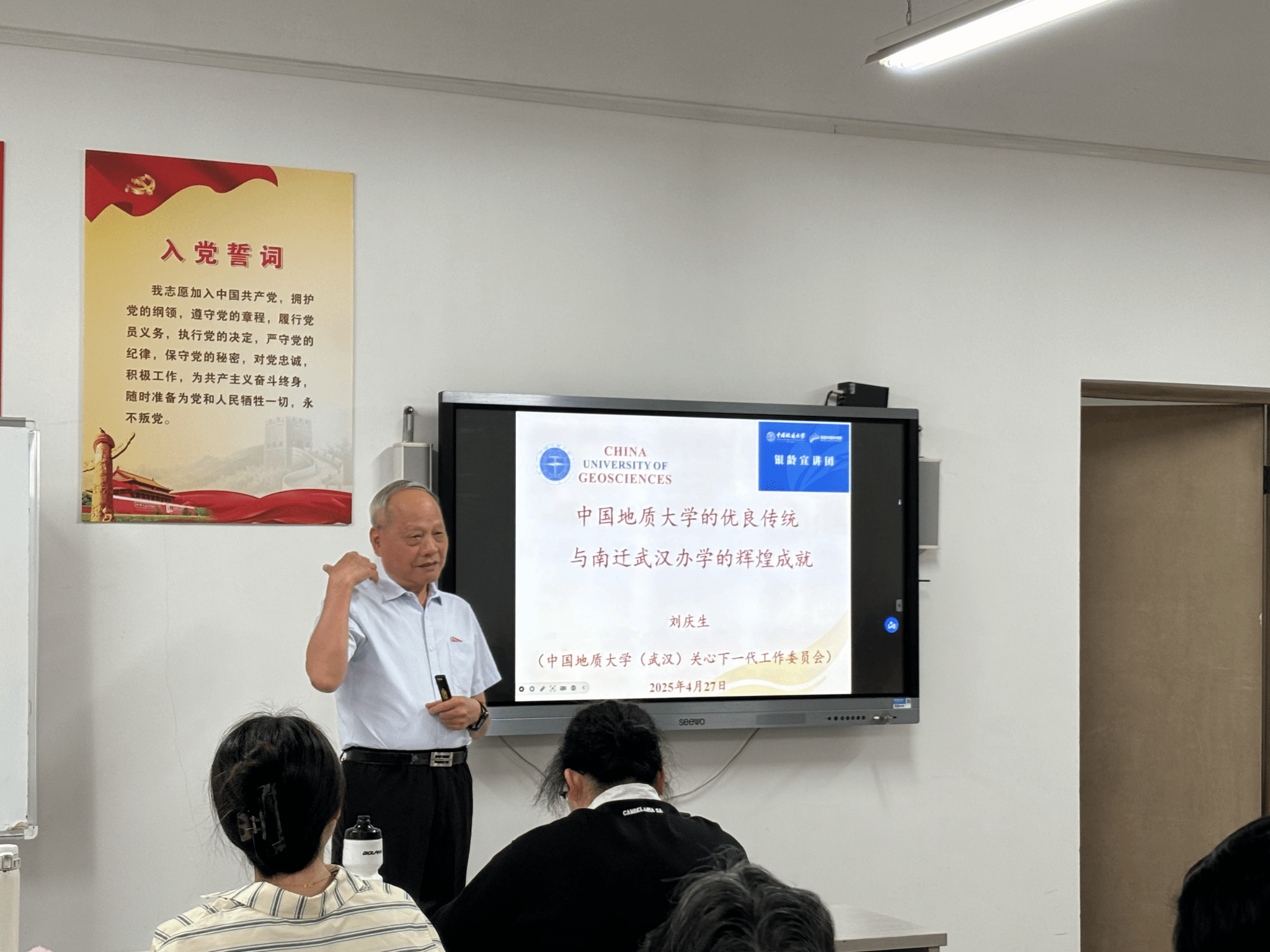 随后,谈球吧网页版登录入口关工委委员、“银龄宣讲团”成员刘庆生老师深情讲述谈球吧网页版登录入口的优良传统以及南迁武汉办学的辉煌历程。从地质先驱“以献身地质事业为荣”的誓言,到南迁时期师生共克时艰的奋斗故事,刘老师用鲜活的历史案例诠释了地大人“艰苦朴素、求真务实”的精神内核,现场听众无不动容。