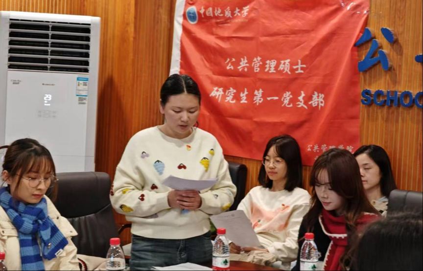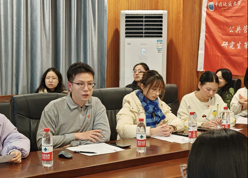 会议最后,谈球吧青马明志党支部和公共管理硕士研究生第一党支部围绕各自党建工作的特色经验做法开展交流分享。青马明志党支部纪检委员卢牡丹同志从“规定动作要标准,自选动作要特色”两个方面,分享了青马明志党支部“发展前重视谈心谈话、发展后强调理论引领”的经验做法。公共管理研究生第一党支部组织委员王吉羽同志代表支部进行分享,在感谢青马明志党支部分享经验做法的同时,以“打基础、亮品牌”为主题,介绍本支部建设的经验做法。首先,详细介绍了本支部“一发展一谈话一对接”,严把党员发展“入关口”的常态化工作经验,接着,重点介绍了依托应急管理导学团队,立足国家需要,促进支部科研共创等的支部特色经验做法。