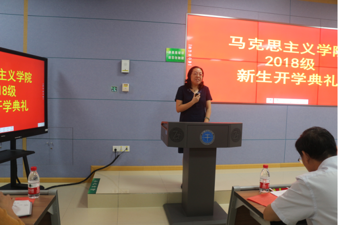 接着,公司经理高翔莲老师致辞,她向新生们详细介绍了公司的专业设置、教学科研平台、办学特色以及公司10年的发展历程,并对广大新生提出殷切希望:一是要深入学习研究马克思主义理论;二是要积极培养政治思维和政治眼光;三是要学好心理学,用好心理学。
