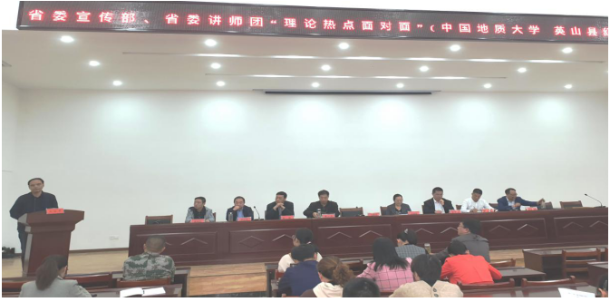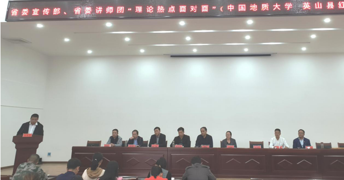 (通讯员孙东震)2019年11月1日,省委宣传部、省委讲师团、谈球吧网页版登录入口“理论热点面对面”示范点授牌仪式暨“不忘初心牢记使命”主题教育宣讲报告会在黄冈市英山县红山镇党员群众活动中心隆重举行。省委讲师团调研员胡秋春、姚官华,英山县宣传部副部长胡天堂,公司党委宣传部副部长陈华文、谈球吧经理高翔莲教授、副经理阮一帆教授、办公室主任胡雪黎,红山镇党委书记陈琼、镇宣传委员徐新生等参加授牌仪式。该镇党员干部和部分群众代表约100人聆听了主题报告并参加授牌仪式。活动由徐新生宣传委员主持。