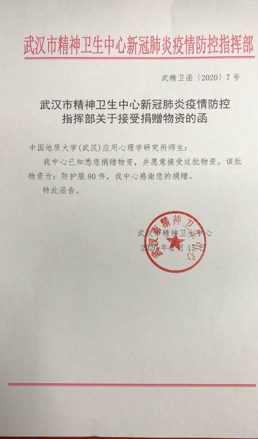 (通讯员杨琴)当获悉母校地大社区在这场严峻的新冠肺炎疫情中出现了多名确诊者和疑似者,当从新闻报道得知谈球吧网页版登录入口(武汉)附属武汉心理医院(武汉市精神卫生中心)出现了医护人员被感染,各方都在向社会发出求助信息时,心理学专业的员工们心急如焚,想为母校做些什么。疫情面前,他们在积极参加抗“疫”的同时,心存大爱,没有忘记培养自己的母校和共同培养自己的谈球吧网页版登录入口(武汉)附属武汉心理医院,因为许多研究生的导师是武汉心理医院的专家,部分员工曾在医院进行临床实习,他们把武汉心理医院作为了自己的第二母校。员工们通过QQ群不断讨论,如何能帮助身处疫情险境中的母校。他们的想法,得到应用心理学研究所师生们的支持。