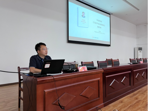 随后,公司副经理、教授、博士生导师李海金以《学深悟透<习近平谈治国理政>第四卷》为主题进行理论宣讲,他从把握“两个确立”“两个结合”“两个大局”“两件大事”“两个答案”五个方面深入宣讲了关于《习近平谈治国理政》第四卷的见解感悟。