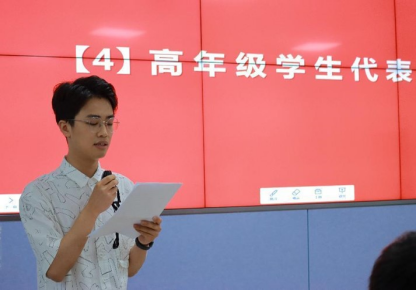 181231班团支部书记刘蓓蓓作为本科生新生代表发言。她说道,“我们可以用奋斗赢得尊严,用梦想矫正惰性,用规划指明未来,以履责收受不凡。平凡是生活的本色,不凡是生命的追求。作为谈球吧学子,须以敏锐的时代洞察力追赶主流,以从容踏实的工作实践力稳定总舵,以团结一心的强大组织力扬起风帆,以勇于突破、敢于质疑的批判反思能力助推进步”。