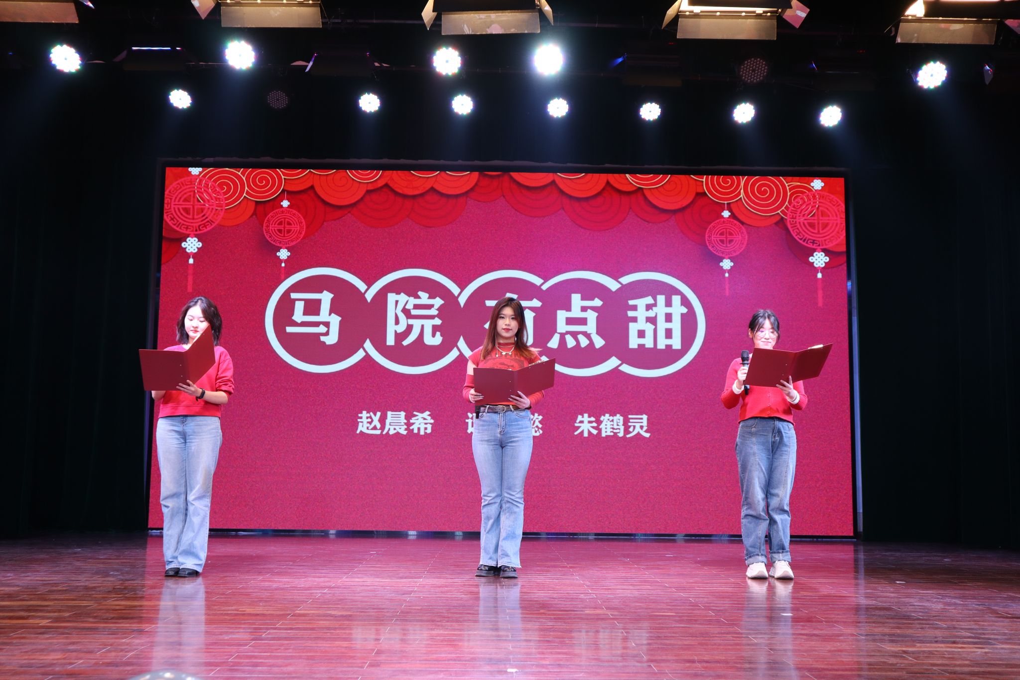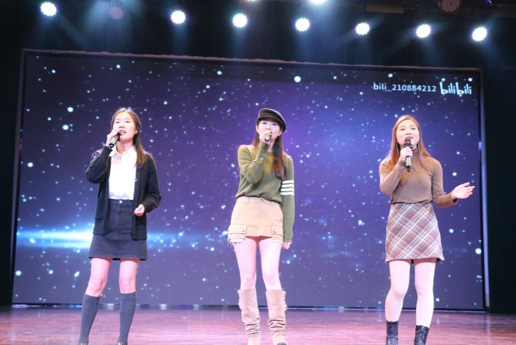图8:赵晨希、朱鹤灵和谭思懿诗朗诵《谈球吧有点甜》