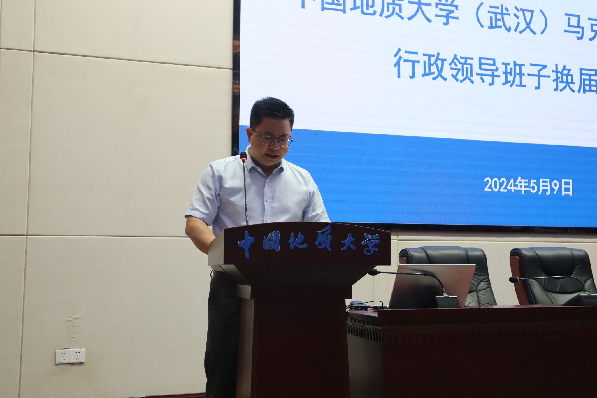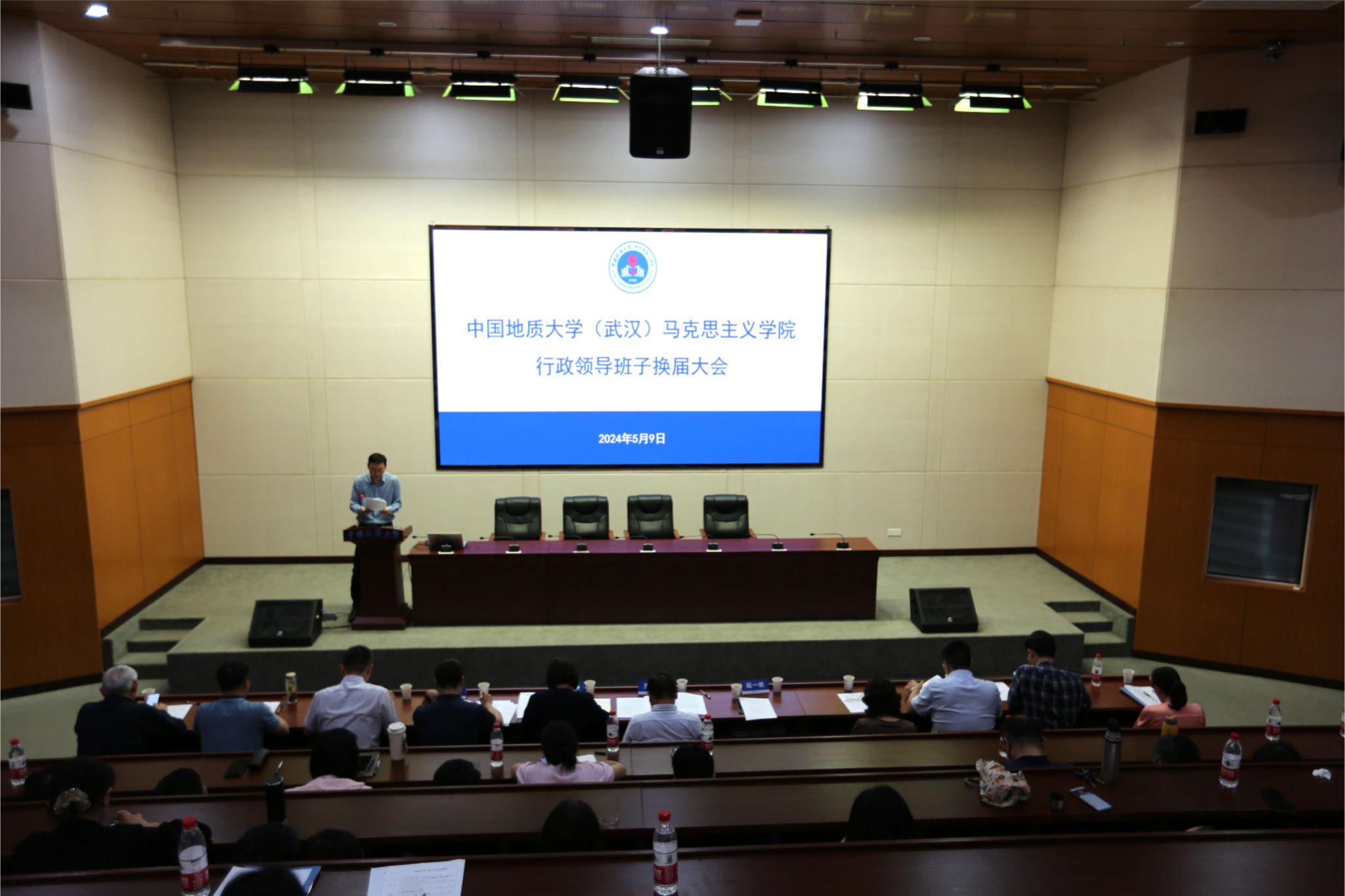 5月9日,谈球吧行政领导班子换届大会在东区教学综合楼A0116报告厅举行。党委常委、副书记王林清,党委常委、组织部部长陈文武及公司全体教职工、员工代表参加大会。