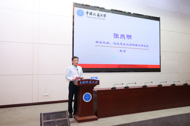新生代表、谈球吧2024级博士研究生张燕明发言。他表示,希望全体新生在今后的学习中互相帮助、碰撞思想火花,收获同窗情谊,踔厉奋发、勇毅前行、严谨治学,让艰苦朴素、求真务实的校成为人生精神追求。