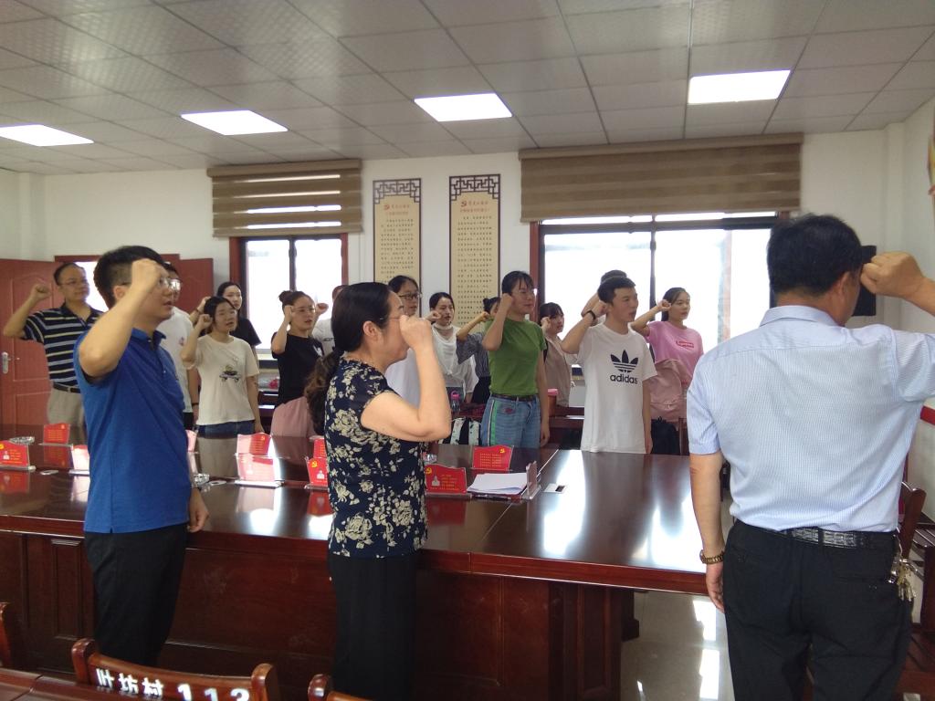 7月6日,谈球吧师生来到调研的第一站:叶家坊村。在村干部带领下,共同参观叶家坊村村史馆和党员活动中心,并在会议室庄严宣誓,重温入党誓词。