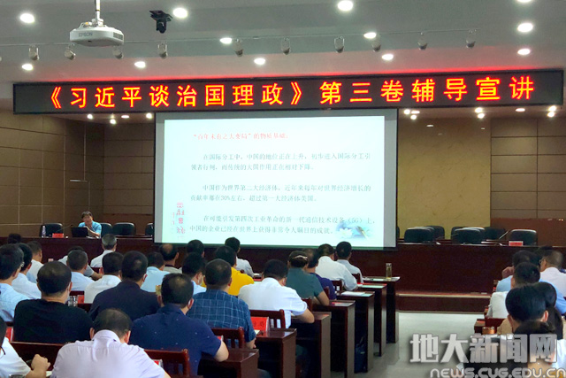 当天上午,英山县委书记陈武斌主持召开县委理论学习中心组第四次学习(扩大)会议,岳奎教授作《习近平谈治国理政》第三卷专题学习辅导报告。他以“新时代中国发展的最新指南”为题,围绕《习近平谈治国理政》第三卷的背景主线、主要内容与创新点、重大意义以及如何学习《习近平谈治国理政》第三卷等方面,进行了深入浅出的辅导和解读。