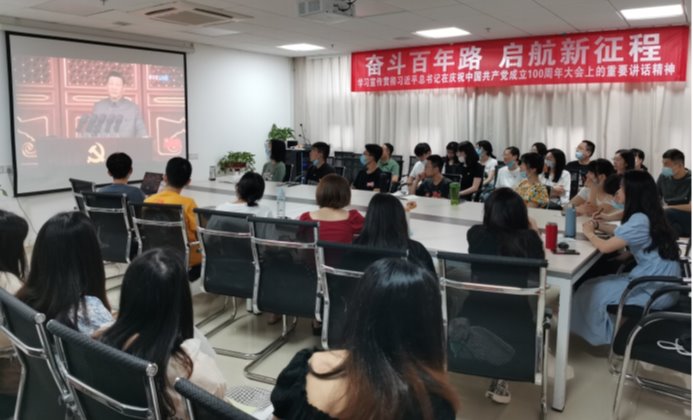 公司党政班子成员和三级单位党政负责人在公司“党员之家”、员工党员在院学术报告厅集中收看庆祝中国共产党成立100周年大会,认真聆听习近平总书记在庆祝大会上的重要讲话。其他师生在办公室、学习室等场所观看大会盛况。