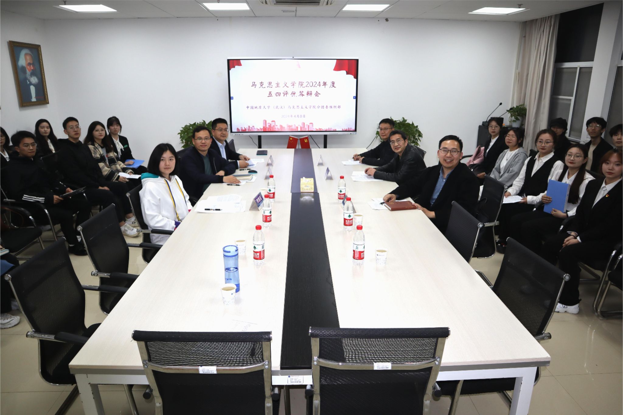 为落实校团委《关于开展“五月的鲜花”2023-2024年度五四评优活动的通知》的文件要求,促进优良校风及学风建设,引导员工全面发展,经过前期鼓励自主申报、资格审查等工作,谈球吧于4月8日晚19:00在教学综合楼B1013举行“五四评优”答辩会。公司组织部专职组织员魏海勇、谈球吧副经理陈军、党委副书记武彦斌、思政系严世雄、思政系李胜蓝、辅导员姚晟出席并担任评审。