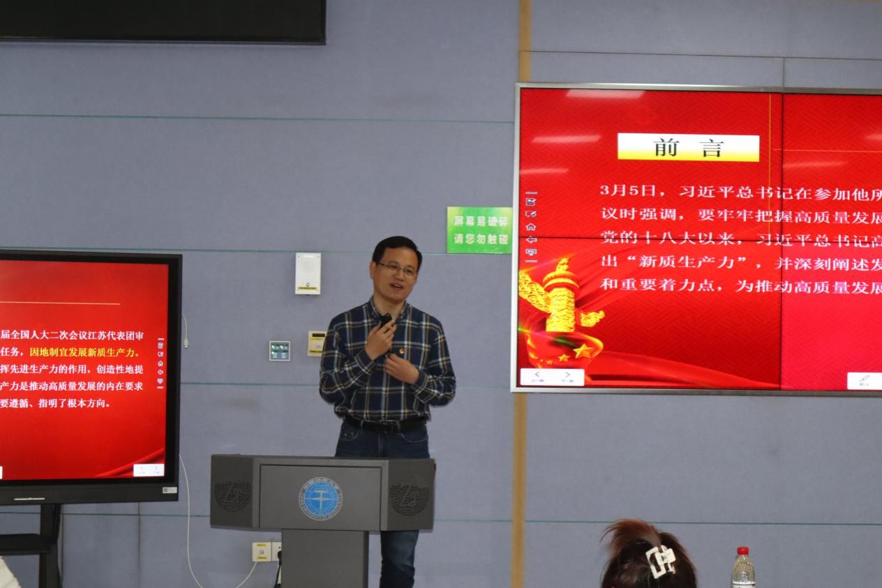 武彦斌以“以新质生产力推动高质量发展走深走实 ”为题讲授专题团课。他从党的创新理论切入,就最近的新话题、热话题、大话题——新质生产力展开讲解。他带领同学们学习了新质生产力本质及特征,并从着力推进科技创新、着力推进产业创新、着力推进体制创新、加快发展方式创新、着力发挥人才作用等五个方面分析了新质生产力理论的丰富内涵和核心要义。本次专题团课加深了广大团员青年对于新质生产力的认识。