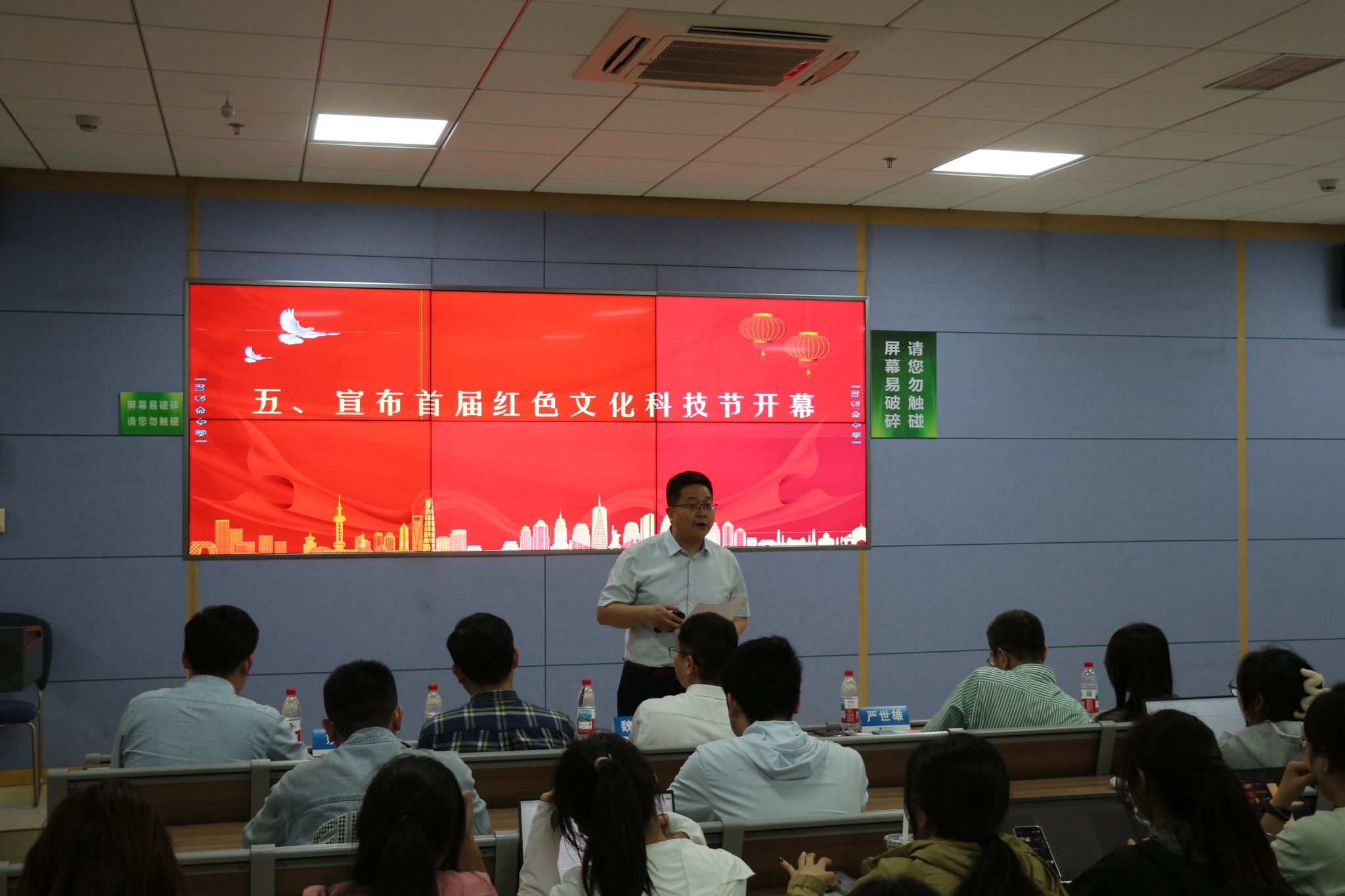陈军鼓励广大同学弘扬马克思主义学风,不断增强问题意识、学术意识和学科意识,在学术研究中提升自己。他代表公司宣布:首届红色文化科技节开幕!