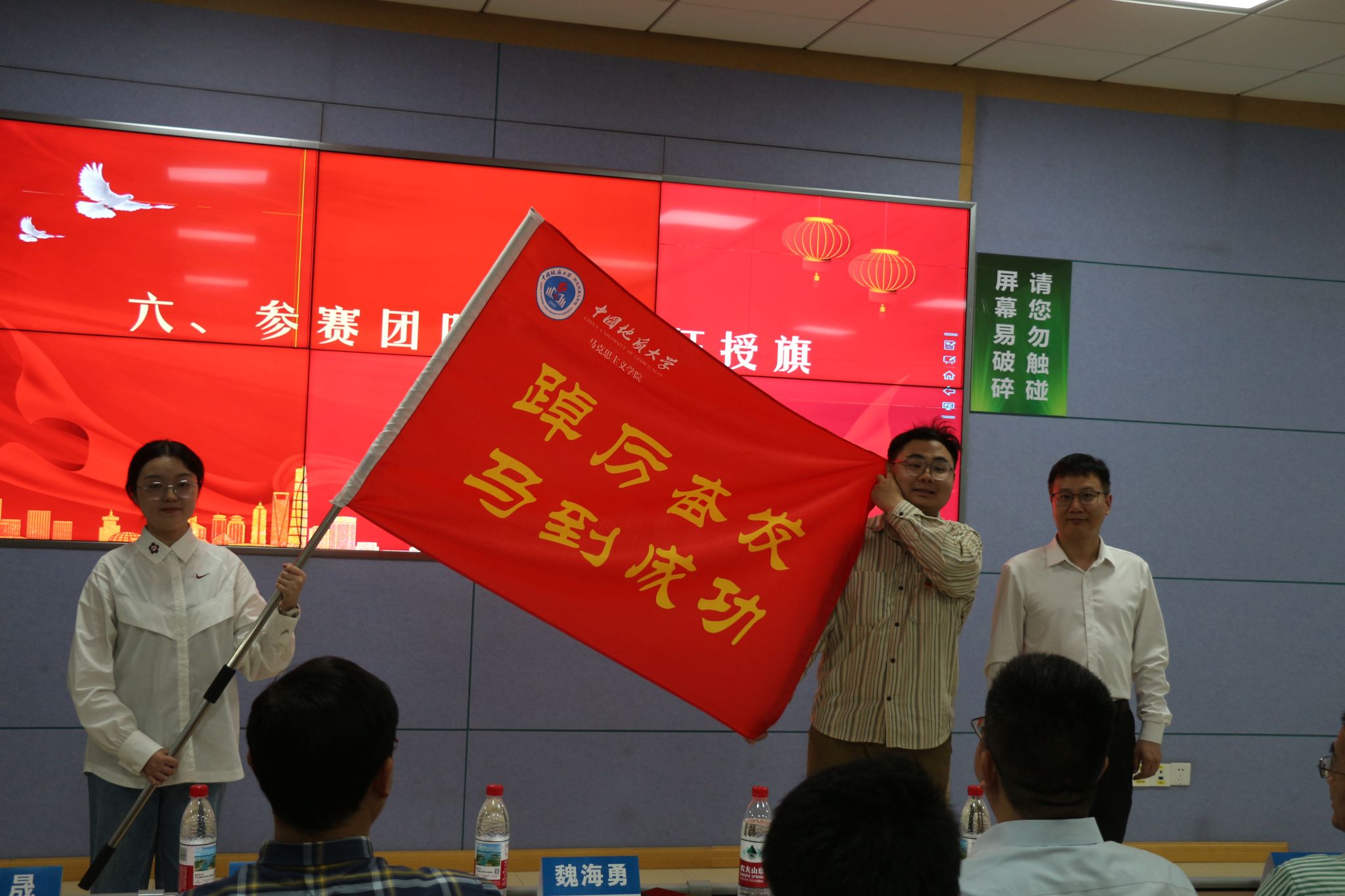 魏海勇为参赛团队代表出征授旗,并作重要讲话。他肯定公司员工前期在学术科研活动中取得的丰硕成果,强调同学们在后续的各类活动与竞赛中,要将“红色”主题与人工智能等高科技相结合,不断彰显马克思主义学科特色。