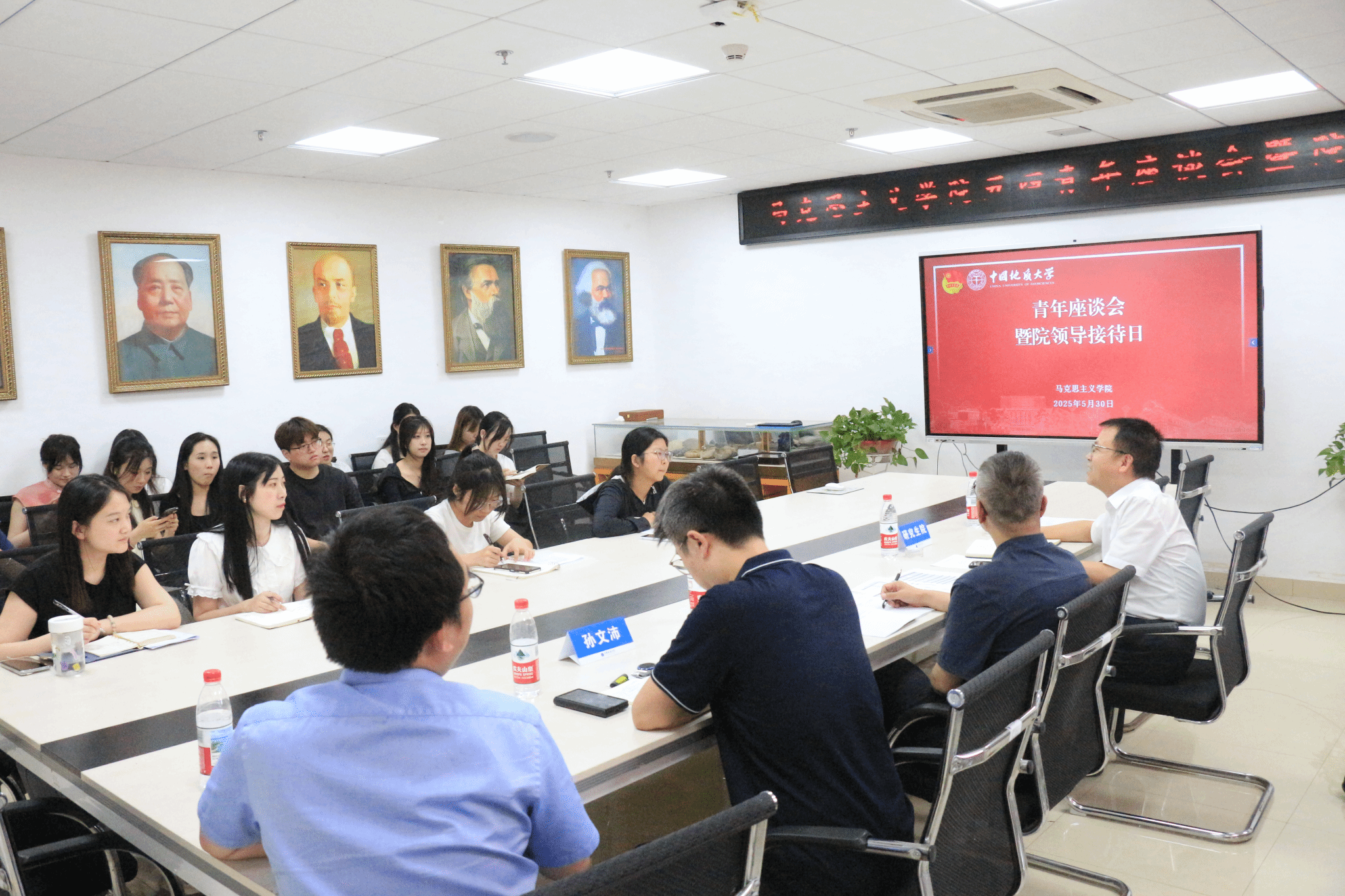 公司领导结合实际情况与自身经历经验,耐心回答各个问题,积极回应,并与同学们展开讨论,最终给出公司的合理解答与方案措施。