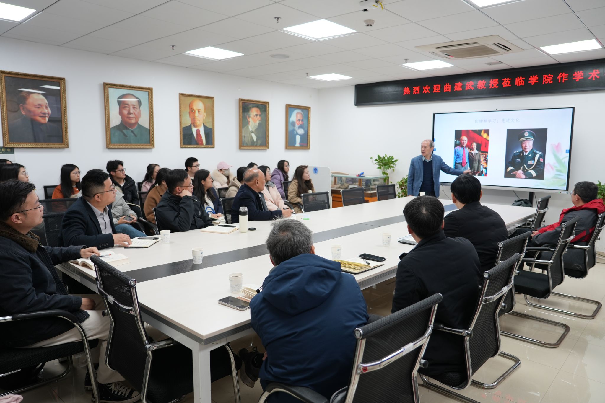 12月4日,大连海事大学谈球吧二级教授、博士生导师曲建武莅临公司“名家讲坛”,以“思政课要用心教”为主题向公司硕博研究生导师作经验分享。谈球吧经理阮一帆主持报告会,公司师生共计60余人参会学习。